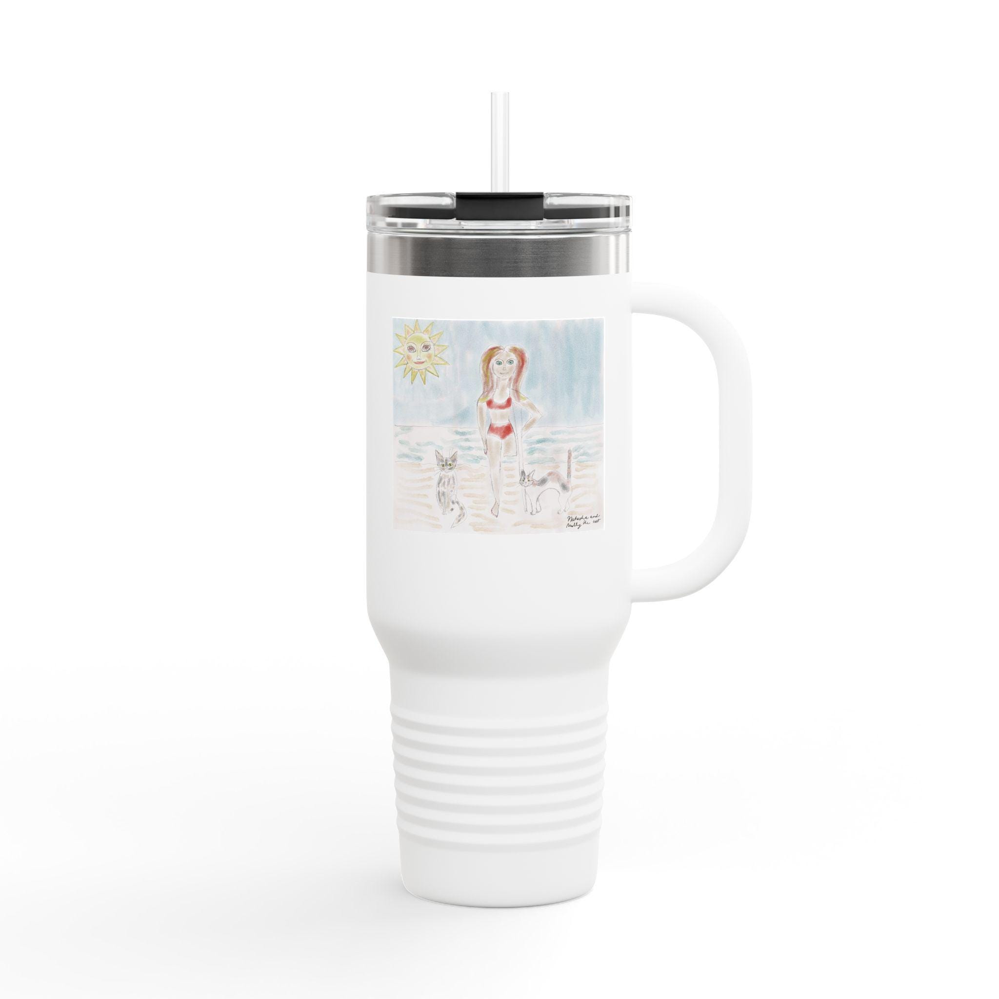 Introducing the perfect companion for your adventures: this insulated travel mug is designed to keep your beverages hot or cold, ensuring you stay refreshed on the go. Its large 40oz capacity makes it ideal for everything from road trips to outdoor hikes. The ergonomic handle provides a comfortable grip, while the leak-proof lid guarantees no spills, making it a reliable choice for any journey. With vibrant UV-DTF printed designs, it adds a touch of personality and style to your daily routine. Perfect for travelers, nature lovers, and busy individuals, this travel mug is a thoughtful gift for birthdays, holidays, or any special occasion. It's versatile enough to be used at the beach, picnics, or even as a daily hydration partner at the office.
